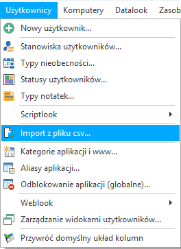 - Jeżeli posiadasz listę pracowników w pliku tekstowym lub arkuszu kalkulacyjny, można zaimportować taką listę do programu. Wystarczy, że dokument zapiszesz jako CSV i zaimportujesz taki plik do programu. W tym celu przejdź do menu Użytkownicy -> Import z pliku csv i postępuj zgodnie z krokami kreatora.