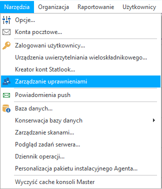 - W Statlook Master należy przejść do menu Narzędzia -> Zarządzanie uprawnieniami.